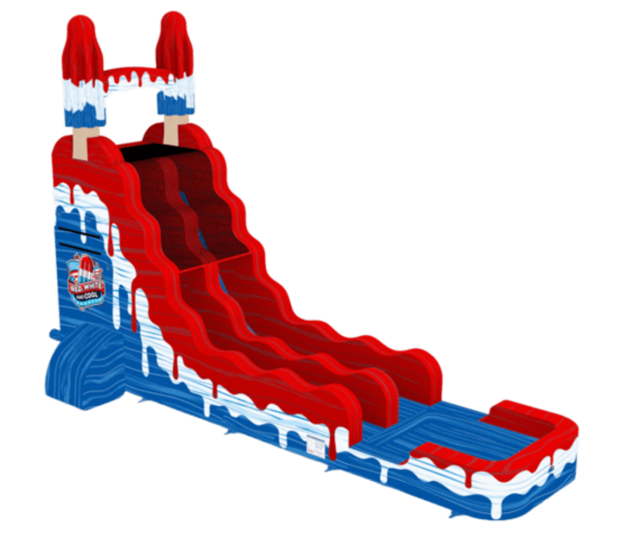 The Red, White, and Cool inflatable waterslide is the ultimate summer attraction, capturing the spirit of fun and nostalgia with its unique popsicle-inspired design. Featuring eye-catching red, white, and blue colors, this waterslide brings to life the joy of a classic icy treat. The playful graphics give the impression of a melting popsicle, adding an extra touch of summer charm. With a smooth sliding surface and a splash pool at the bottom, it's perfect for cooling off and making unforgettable memories at any summer gathering. Whether it's a backyard party or a community event, this waterslide promises excitement and refreshment for everyone.